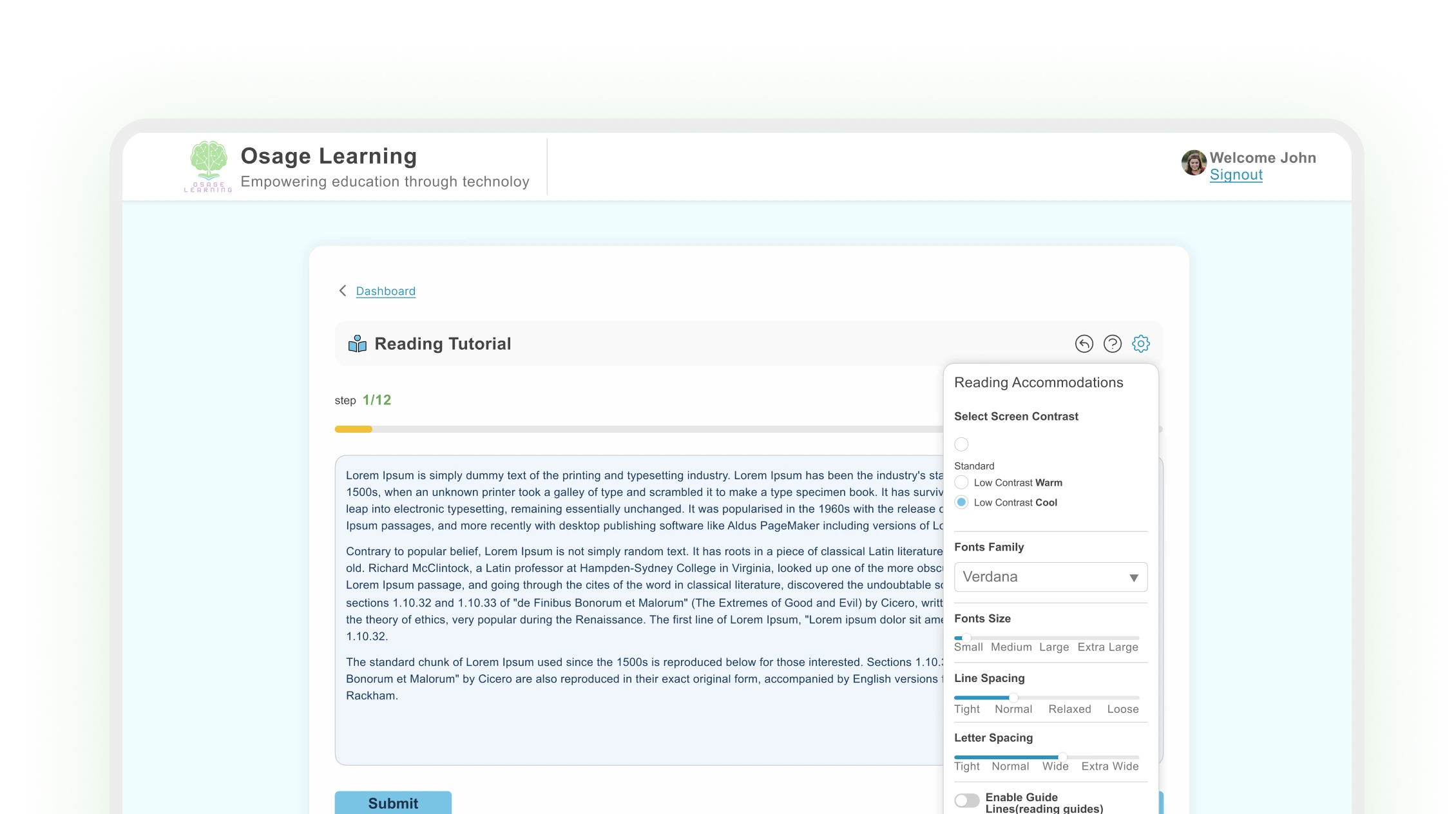 - Font Customization (dyslexia-friendly fonts)