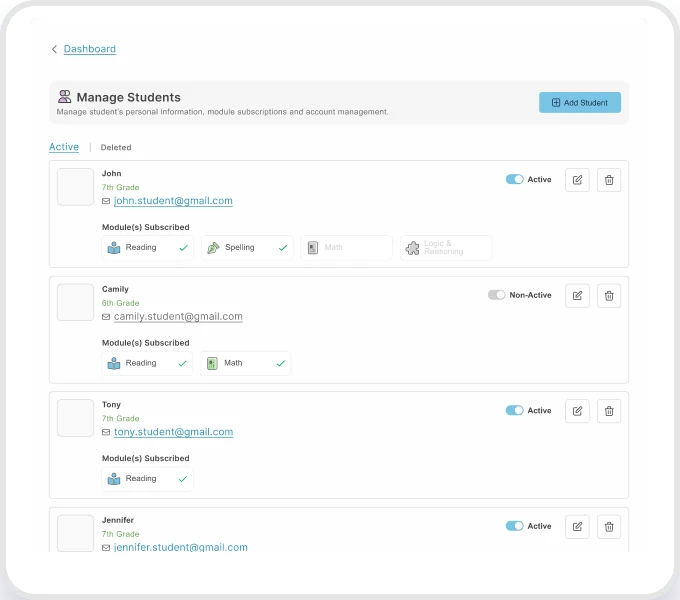 Once the Spelling Module launches, you’ll be able to add it to your subscription. Each module is priced separately per student.